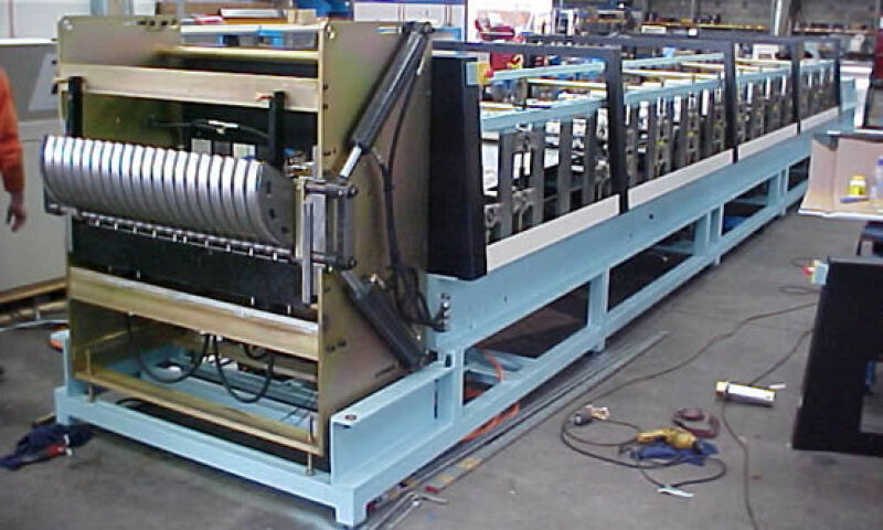 Asked to quote for producing a corrugated section for a Canadian company, we examined the end use and proposed fitting an integrated bender unit to the corrugator, making production line for a fully processed window well production line. This lessened production from eight processes to one and significantly reduced manufacturing costs and time.