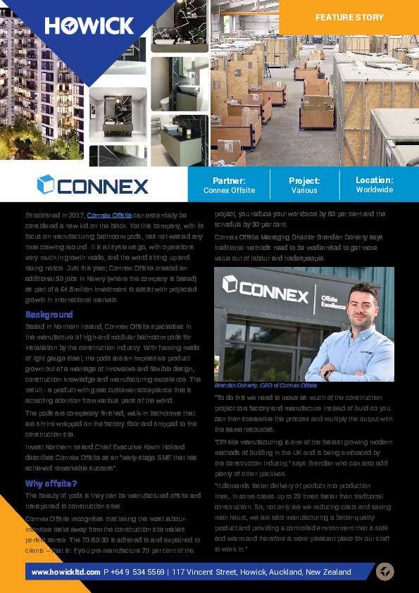 Connex Offsite’s embrace of offsite manufacturing is in sync with Howick’s. Both see the value of the pre-fabricated or pre-manufactured product. Brendan is a firm believer in offsite manufacturing being one of the fastest growing modern methods of building in the United Kingdom.