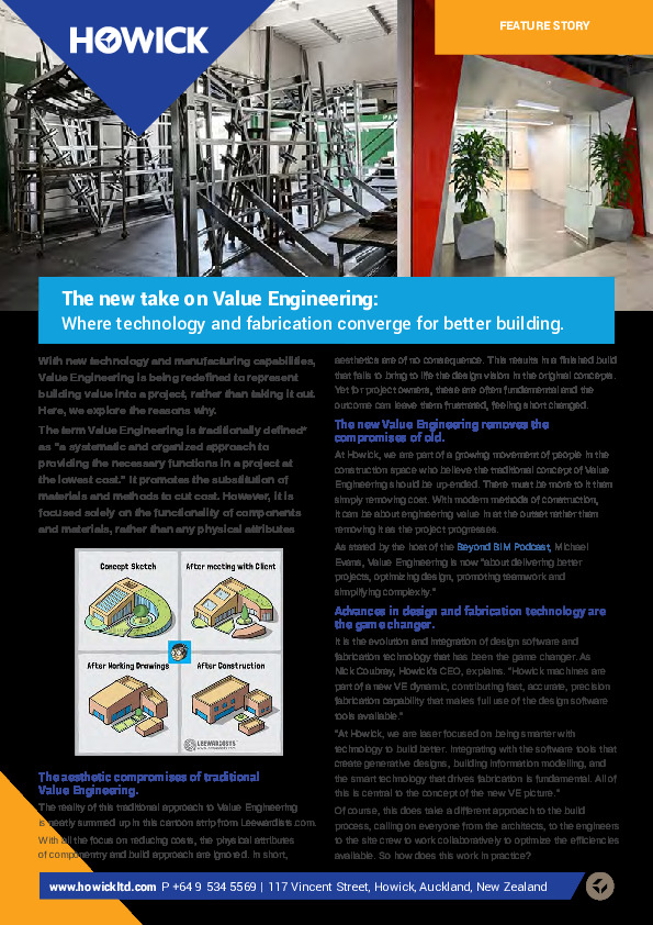 At Howick, we are part of a growing movement of people in the construction space who believe the traditional concept of Value Engineering should be up-ended. There must be more to it than simply removing cost. With modern methods of construction, it can be about engineering value in at the outset rather than removing it as the project progresses.